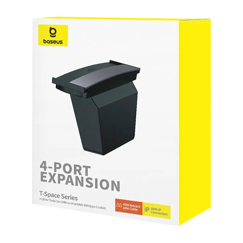 Хъб за вграждане за автомобили TESLA T-Space BASEUS (B00051300111-00) 45W - 2xUSB-A, 2xUSB-C + кабел Type-C (Lightning)