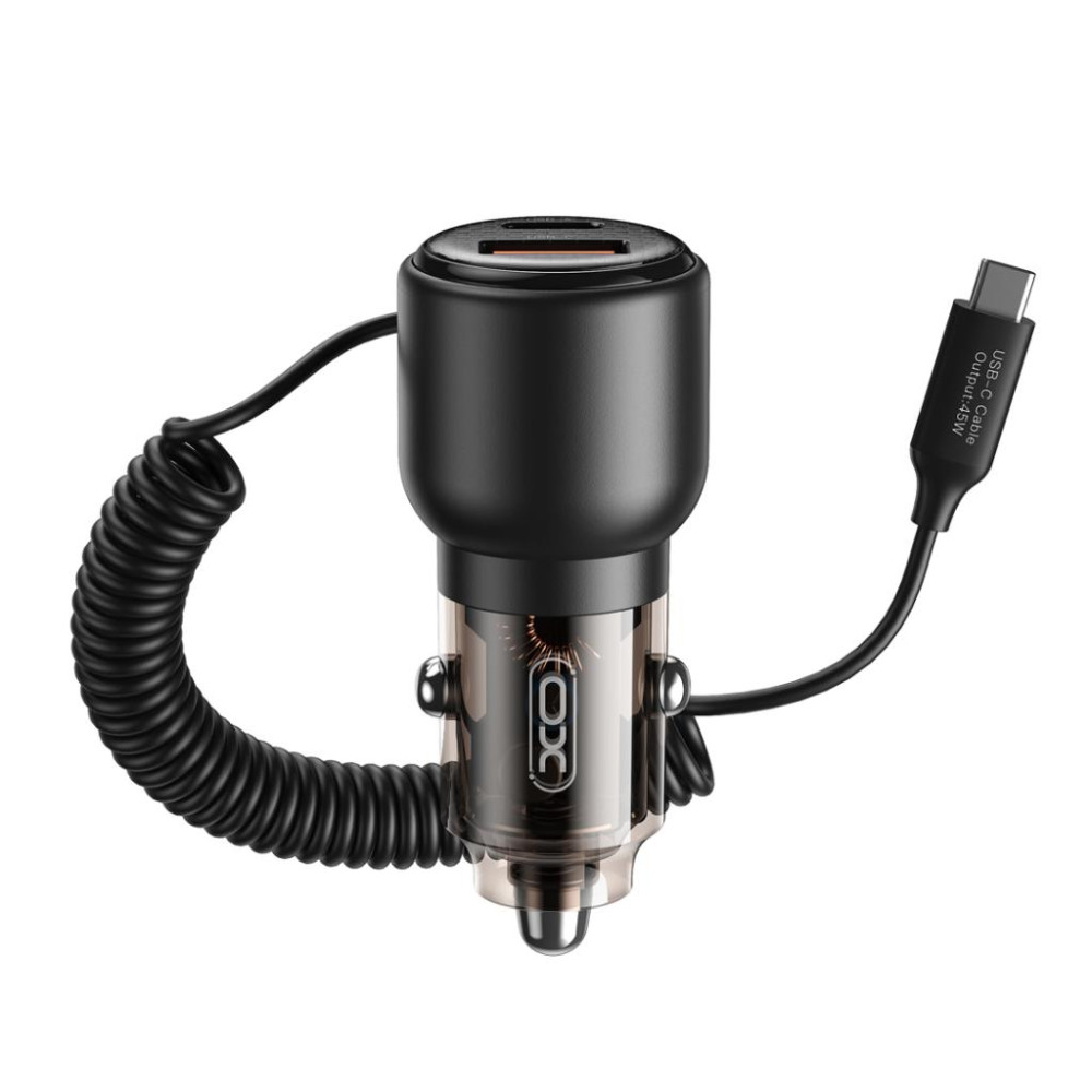 - Зарядно устройство за автомобил 12V XO Transparent Metal Car Charger с вграден кабел Type-C.