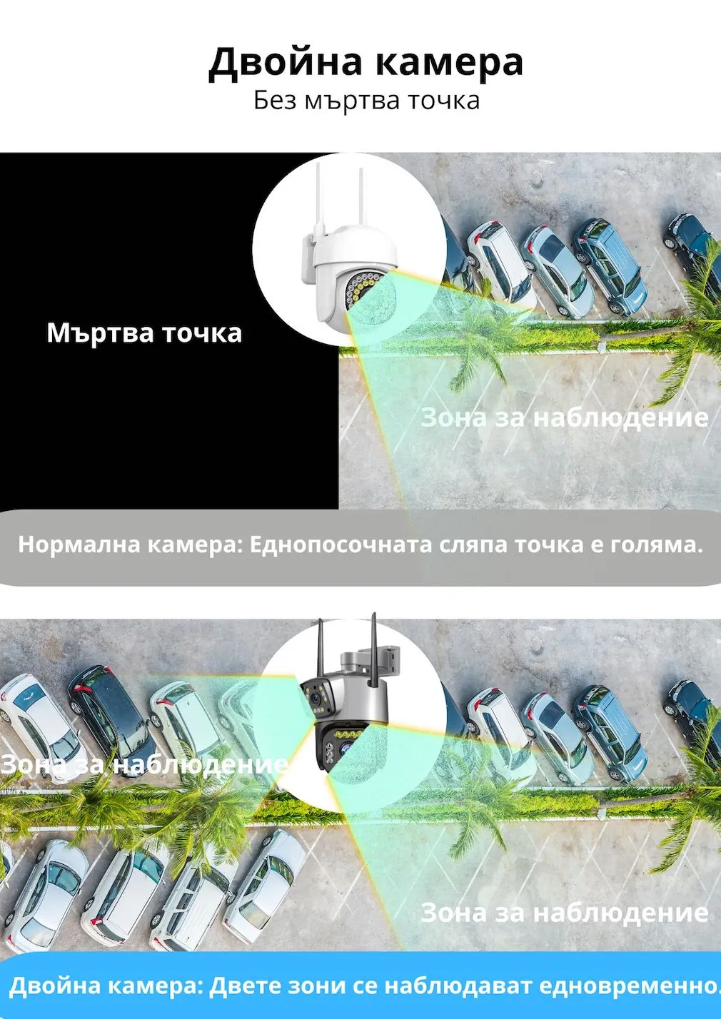 - Резолюция: 2MP + 2MP;