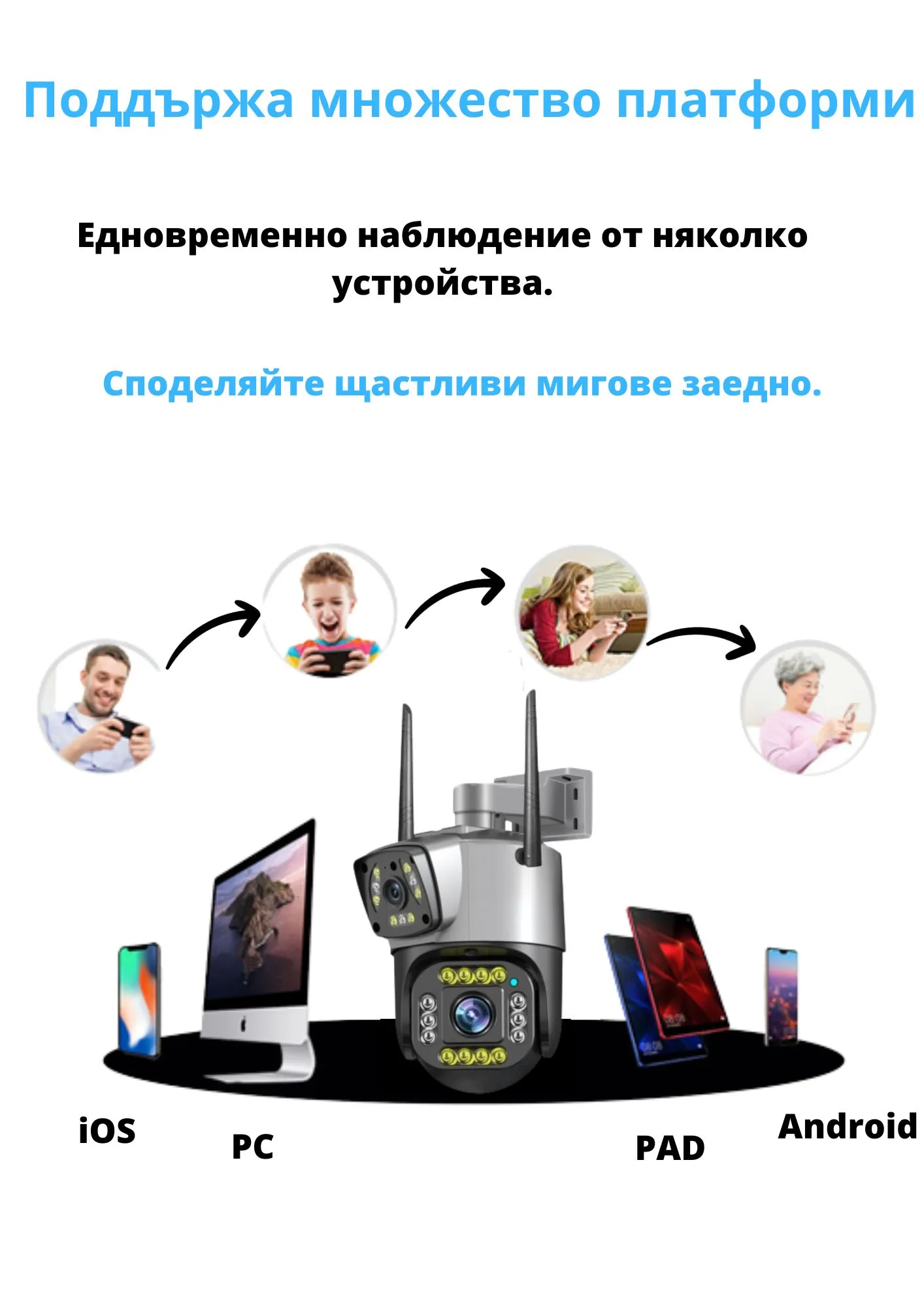 Възможност за едновременно наблюдение от няколко мобилни телефона.
