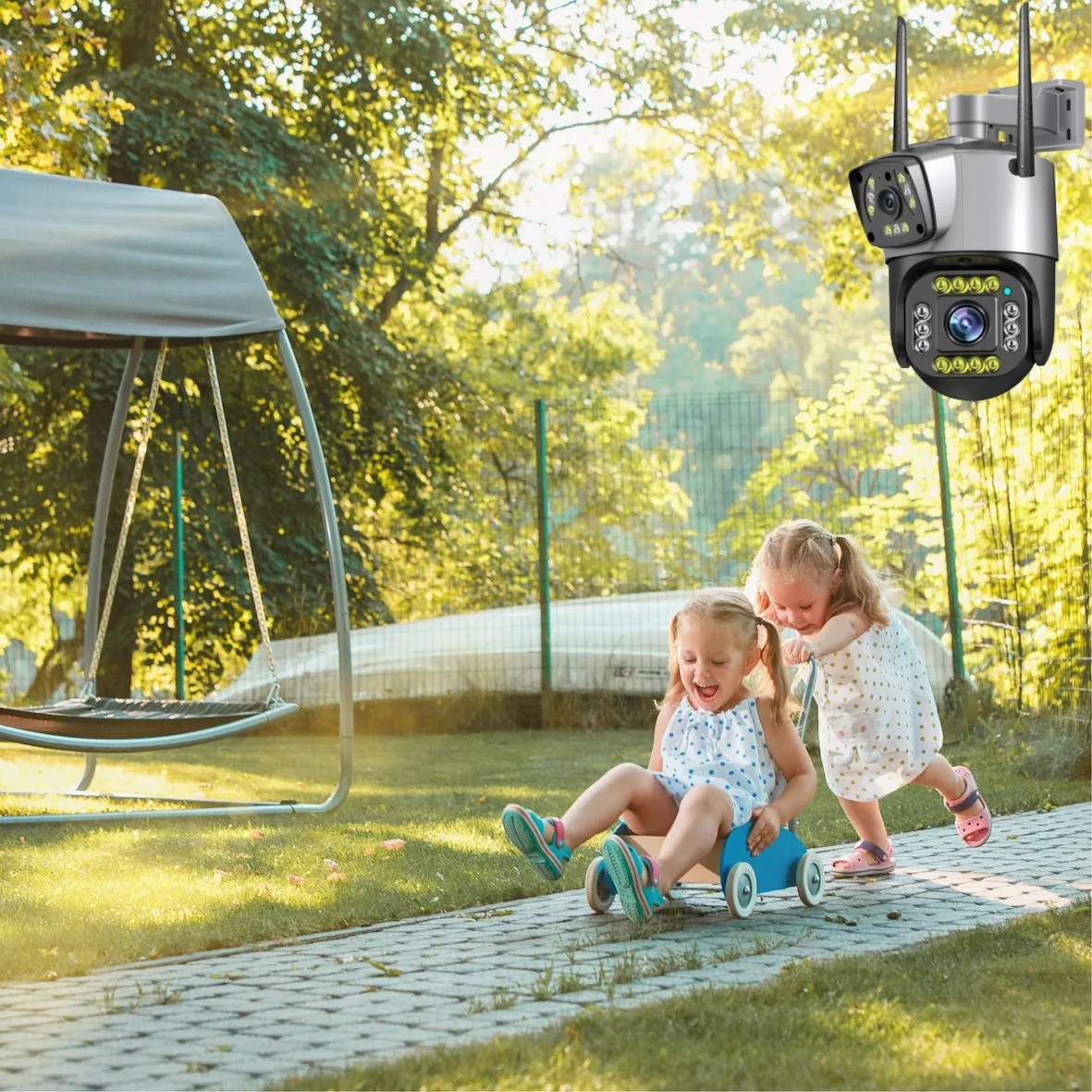 Безжична външна двойна камера с проследяване на движение и детекция на хора.